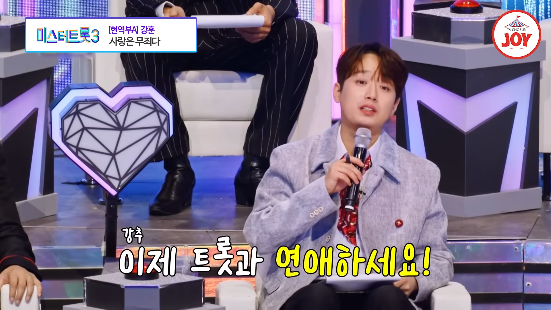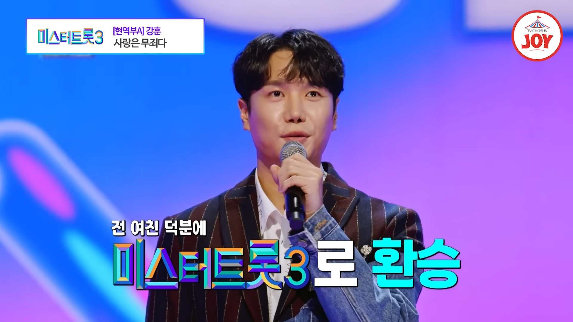 TV CHOSUN '미스터트롯3'에서 강훈이 나훈아의 명곡 '사랑은 무죄다'를 선곡해 감동적인 무대를 선보였습니다. 실연의 아픔을 예술로 승화시키겠다는 강훈의 열정은 관객과 심사위원들에게 깊은 인상을 남기며 진정성 넘치는 무대를 완성했습니다.