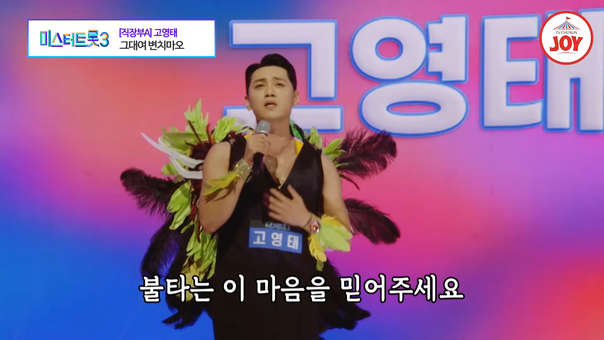 2024년 12월 19일 방송된 TV조선 ‘미스터트롯3’ 1회에서 금천구 고깃집 직원으로 알려진 고영태가 남진의 히트곡 ‘그대여 변치마오’를 열창하며 화려한 무대를 선보였습니다. 쌈바 의상과 독창적인 퍼포먼스로 관객들과 심사위원들을 매료시킨 그는, 올하트를 받으며 본선에 진출하는 쾌거를 이뤘습니다.