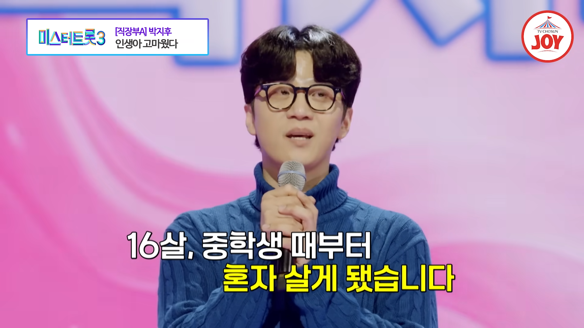 박지후는 16살 중학생 시절, 부모님의 이혼으로 혼자가 되었으며, 춥고 배고픈 시절을 혼자 힘으로 견뎌내야 했습니다. 그는 그 힘든 시절 속에서 노래가 자신의 유일한 위로가 되었음을 밝히며, "잘 살아왔다고 칭찬을 한번 듣고 싶어서" 미스터트롯3 출연을 결심했다고 말했습니다.