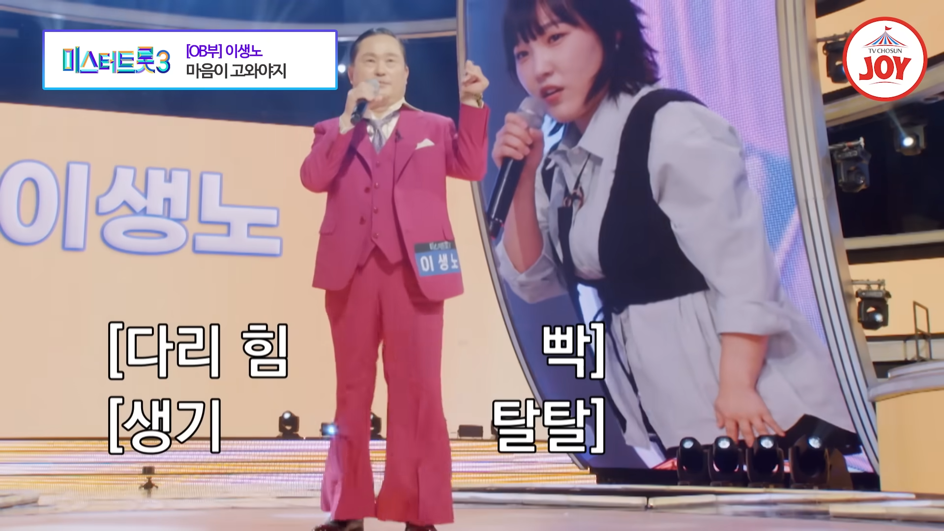 2024년 12월 26일 방송된 TV조선 ‘미스터트롯3’ 2회에서 OB부의 최연장자 참가자인 이생노가 남진의 히트곡 ‘마음이 고와야지’를 열창하며 감동과 유쾌함을 동시에 선사했습니다. 그의 열정적인 무대는 나이를 뛰어넘는 에너지와 생기로 가득 차 있었습니다.