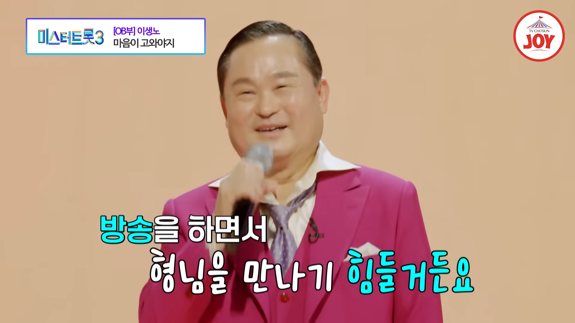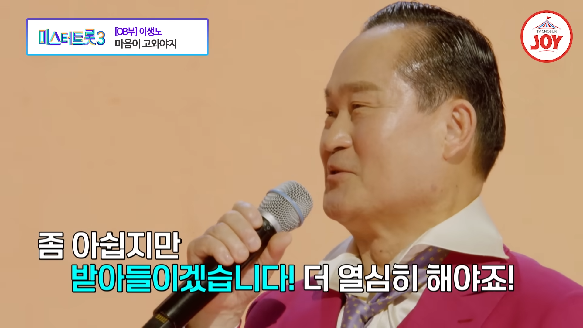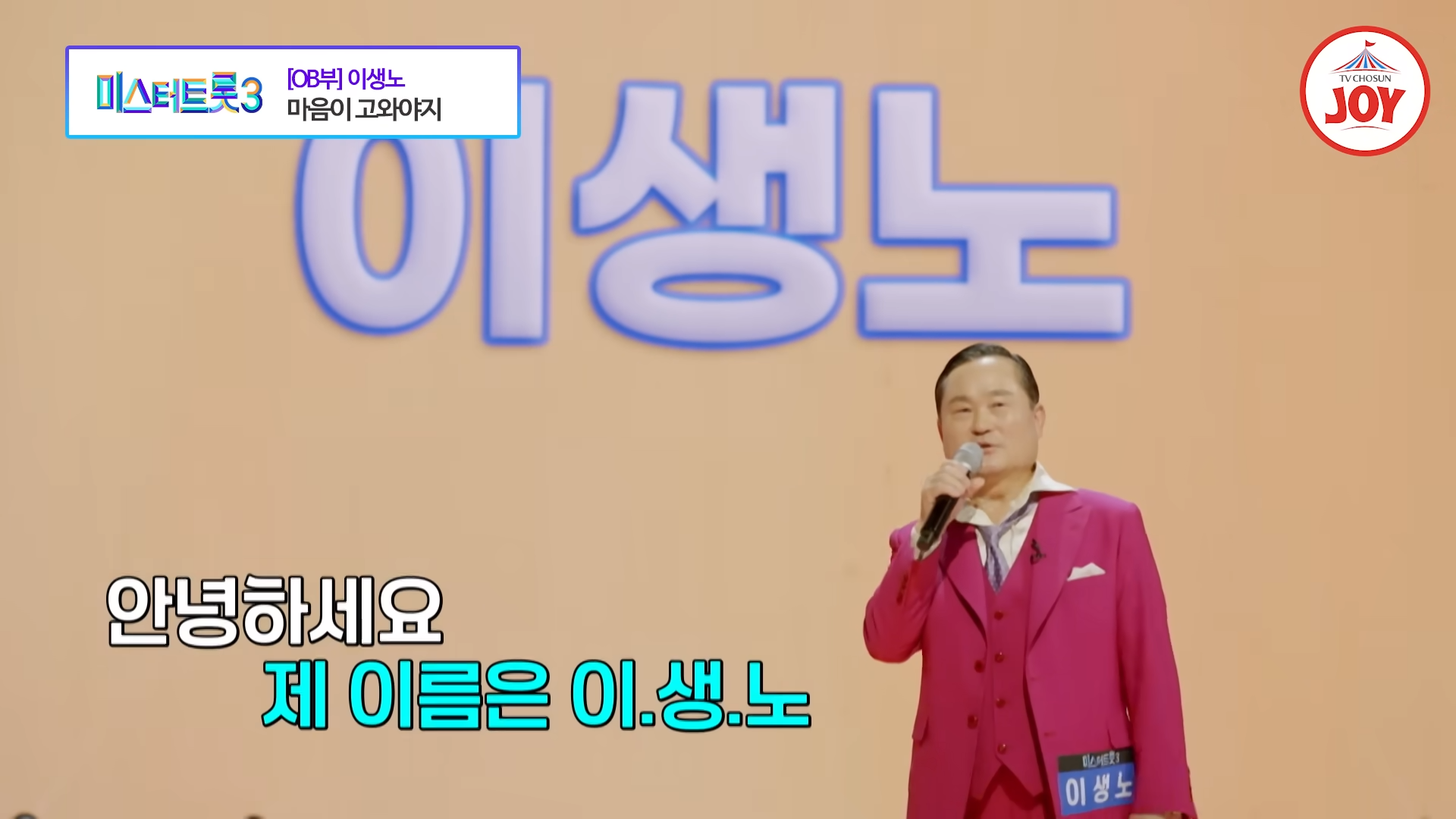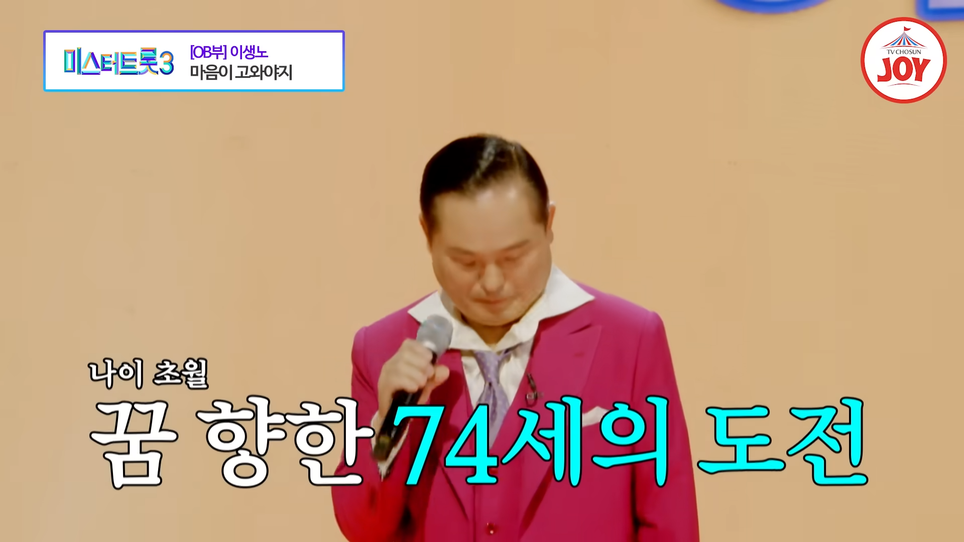 2024년 12월 26일 방송된 TV조선 ‘미스터트롯3’ 2회에서 OB부의 최연장자 참가자인 이생노가 남진의 히트곡 ‘마음이 고와야지’를 열창하며 감동과 유쾌함을 동시에 선사했습니다. 그의 열정적인 무대는 나이를 뛰어넘는 에너지와 생기로 가득 차 있었습니다.