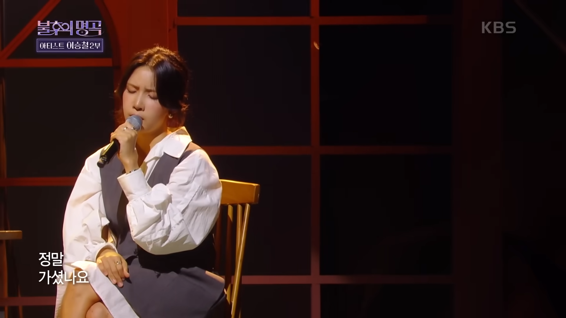 - 의자에 앉아 읊조리듯 시작하며, 곡의 감성을 차분히 전달.