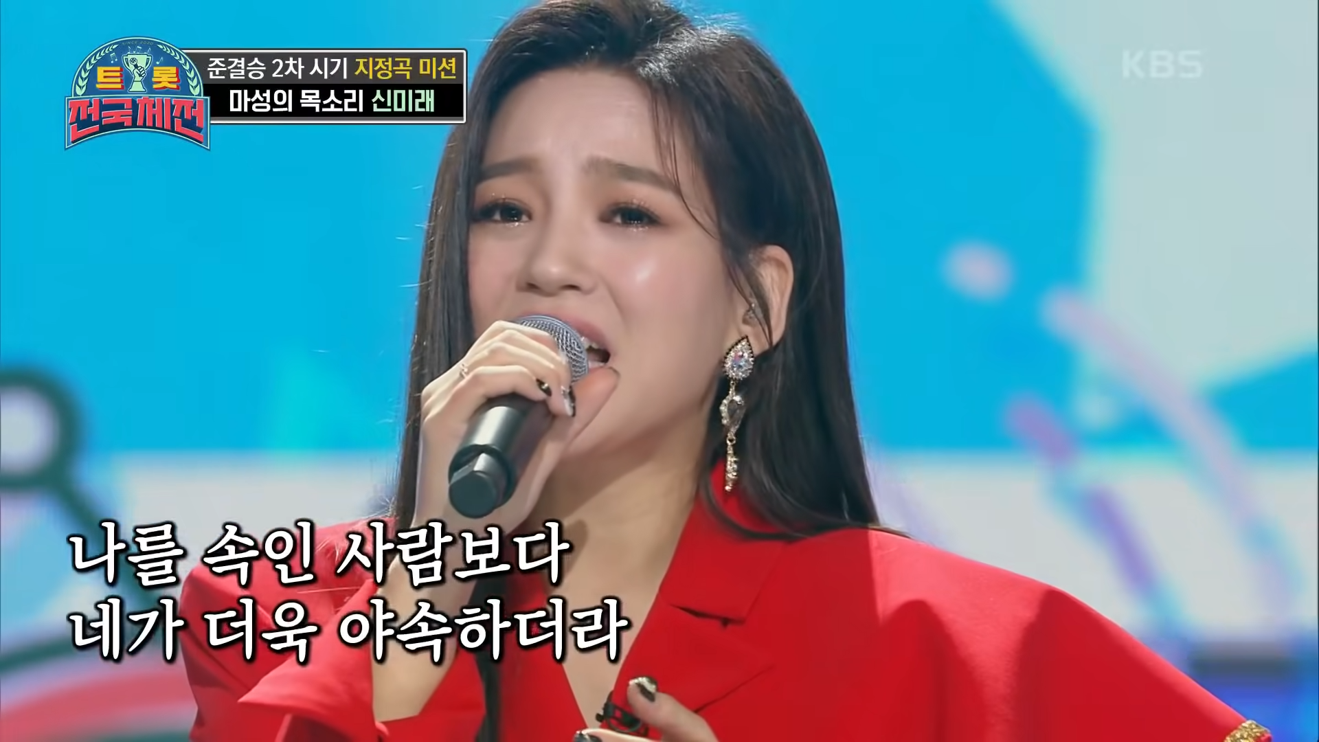 신미래는 KBS ‘트롯 전국체전’에서 ‘고장난 벽시계’를 열창하며 대중과 심사위원들에게 깊은 인상을 남겼습니다.