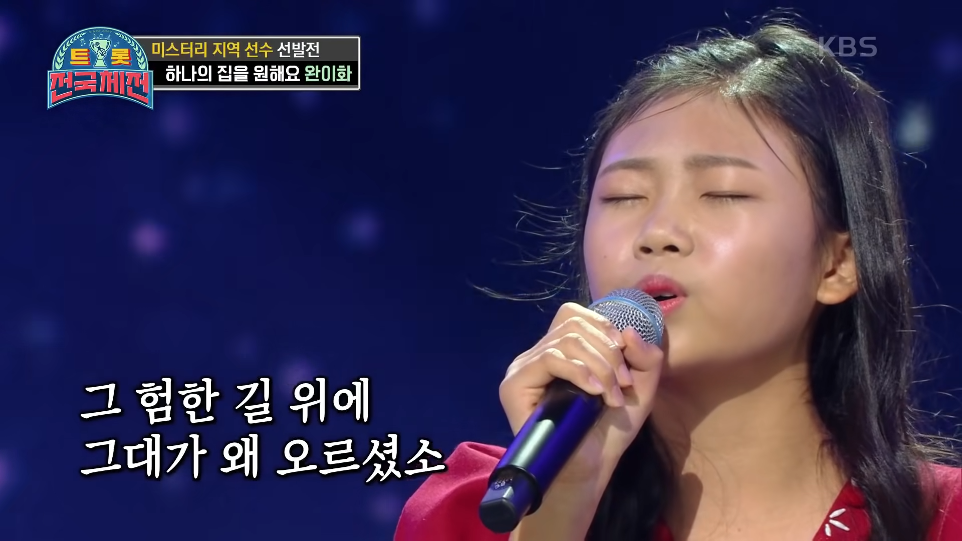 완이화는 어린 나이임에도 불구하고 깊은 감성과 뛰어난 가창력으로 트로트 신예로 주목받고 있습니다.