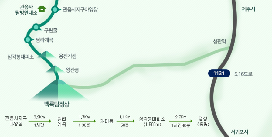 | 관음사 코스 | 8.7km | 왕복 8-10시간 | |