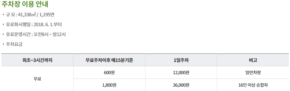 | 주차 | 3시간까지 무료 |
