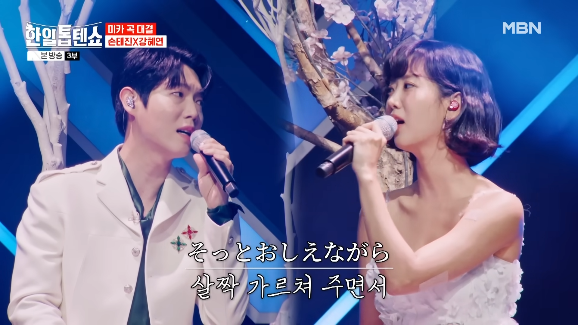 손태진과 강혜연의 ‘연분홍빛 춤출 무렵’ 듀엣 무대는 한일 음악의 경계를 넘어선 감동적인 순간이었습니다. 두 가수의 매력적인 음색과 하모니가 어우러져, 원곡의 아름다움과 새로운 해석을 동시에 느낄 수 있었습니다.